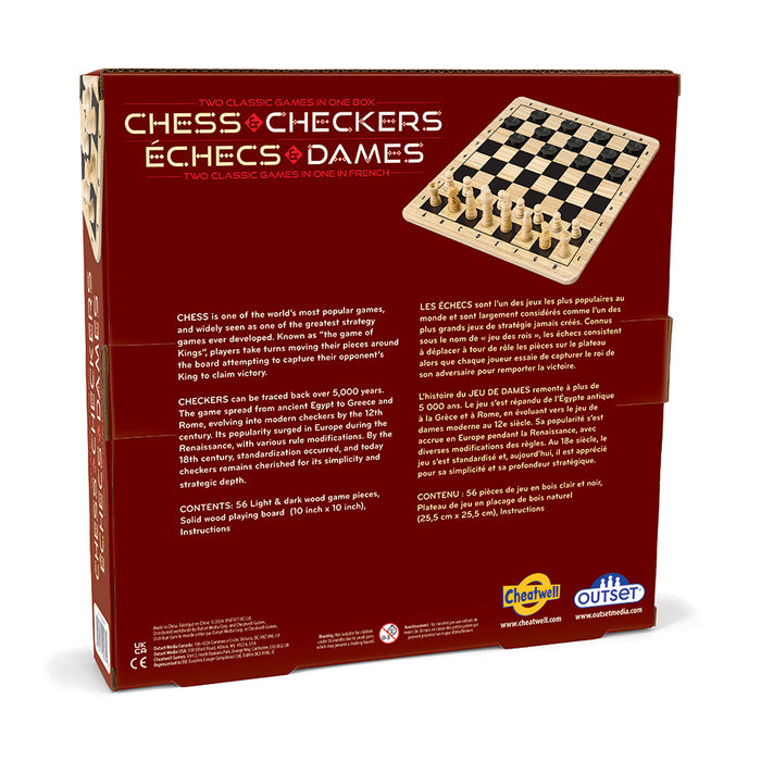 CHESS & CHECKERS gives players two great strategy games in one box. Will you king yourself, or will you check the king? Why not do both! With this deluxe wood version, you can!