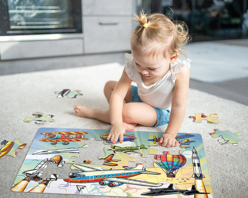 55155Original price $20.00 - Original price $20.00Original price$20.00$20.00 - $20.00Current price $20.00| /Kids will take Flight while grounded on the floor with this exciting 20" x 30" floor puzzle featuring all the favourite things that go in the air! ...
