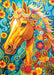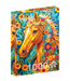 The tan horse with a Blooming Mane is full of joy as it flaunts its bright and bold colourful locks. Adorned with orange and yellow flowers, this vibrant image pops from the blue background of leaves that match that blue eye staring right at you, drawing you into the puzzle.
