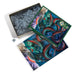 The ocean is vast and able to conceal gargantuan secrets like this electrifying sea serpent. Turquoise coils sport the bioluminescence found on deep sea creatures and illuminate the murky depths where you can just spot the future that awaits the ship above. UK-based artist Emily Megan has a focus on creature design and works in both 2 and 3D. From the Depths is a fantastical 1000 piece puzzle for lovers of mystery, the sea, and its mythical creatures.