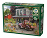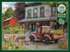 A lovely Country Store where kids can go to buy candy and flowers for their mom. The Cobble Hill General Store is situated next to a big green grassy field where children can bring their dogs to play and swing on the tire swing that hangs from the great big tree. The Golden Retriever and puppies are there today watching the birds. It must be flower delivery day because the vintage rust red truck has a bed full of beautiful hanging planters and fresh cut flowers. A beautiful 1000 piece nostalgic country puzzle from Greg Giordano.