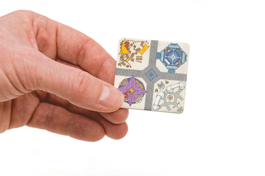 Tile Actions: On your turn, you MUST perform a tile action of your guild. The first action is to choose to take and add a new tile to the board. You may select to take a tile from the pool or risk taking the face-down tile from the top of the stack. The second action you may choose would be to rotate a tile on the City's edge to a more self-rewarding configuration. Be warned...your opponents are watching your every move.