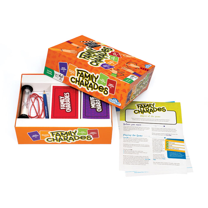 Charades for all ages! Instant, out of the box fun! No more time spent thinking up good charades. Introduce kids to the classic party game that develops critical thinking skills and builds imagination. So push the coffee table out of the way and get ready for some hilarious family moments.